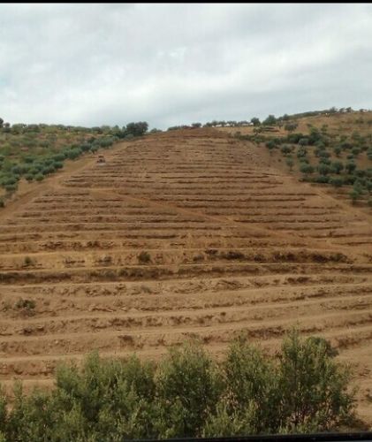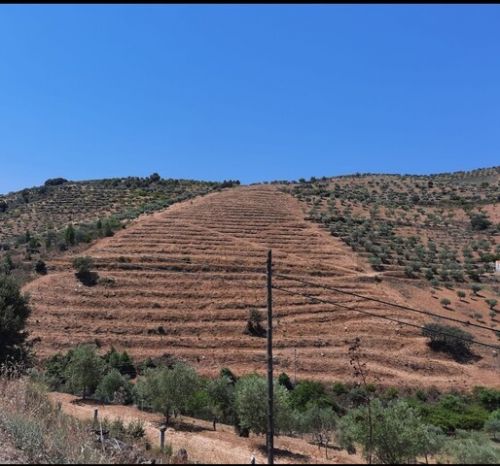Terreno em patamares com plantação de amendoeiras, 400 no total, em produção biológica.